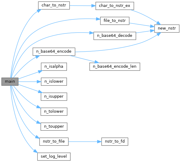 References _nstr, char_to_nstr(), N_STR::data, file_to_nstr(), free_nstr, N_STR::length, LOG_DEBUG, LOG_INFO, LOG_NOTICE, n_base64_decode(), n_base64_encode(), n_isalpha(), n_islower(), n_isupper(), n_log, n_tolower(), n_toupper(), nstr_to_file(), nstrprintf, set_log_level(), and N_STR::written.