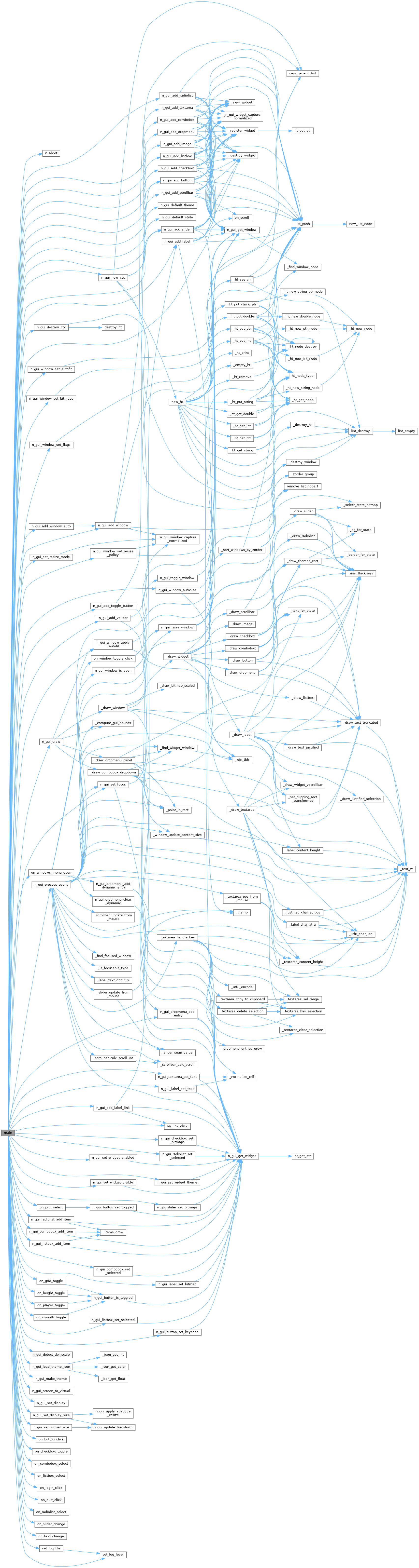 References current_proj, display, DONE, dropmenu_windows_id, fps_timer, getoptret, ghost_enabled, gui, N_GUI_CTX::gui_offset_x, N_GUI_CTX::gui_offset_y, N_GUI_CTX::gui_scale, HEIGHT, height_mode, lbl_proj, lbl_status, LOG_DEBUG, LOG_ERR, LOG_INFO, log_level, LOG_NOTICE, n_abort(), n_gui_add_button(), n_gui_add_checkbox(), n_gui_add_combobox(), n_gui_add_dropmenu(), n_gui_add_image(), n_gui_add_label(), n_gui_add_label_link(), n_gui_add_listbox(), n_gui_add_radiolist(), n_gui_add_scrollbar(), n_gui_add_slider(), n_gui_add_textarea(), n_gui_add_toggle_button(), n_gui_add_vslider(), n_gui_add_window(), n_gui_add_window_auto(), N_GUI_ALIGN_CENTER, N_GUI_ALIGN_JUSTIFIED, N_GUI_ALIGN_LEFT, N_GUI_ALIGN_RIGHT, N_GUI_AUTOFIT_CENTER, N_GUI_AUTOFIT_WH, n_gui_button_set_keycode(), n_gui_checkbox_set_bitmaps(), n_gui_combobox_add_item(), n_gui_combobox_set_selected(), n_gui_destroy_ctx(), n_gui_detect_dpi_scale(), n_gui_draw(), n_gui_dropmenu_add_entry(), N_GUI_IMAGE_CENTER, N_GUI_IMAGE_FIT, N_GUI_IMAGE_STRETCH, n_gui_label_set_bitmap(), n_gui_label_set_text(), n_gui_listbox_add_item(), n_gui_listbox_set_selected(), n_gui_load_theme_json(), n_gui_make_theme(), n_gui_new_ctx(), n_gui_process_event(), n_gui_radiolist_add_item(), n_gui_radiolist_set_selected(), N_GUI_RESIZE_ADAPTIVE, n_gui_screen_to_virtual(), N_GUI_SCROLLBAR_H, N_GUI_SCROLLBAR_V, N_GUI_SELECT_MULTIPLE, N_GUI_SELECT_SINGLE, n_gui_set_display(), n_gui_set_display_size(), n_gui_set_focus(), n_gui_set_resize_mode(), n_gui_set_virtual_size(), n_gui_set_widget_enabled(), n_gui_set_widget_theme(), n_gui_set_widget_visible(), N_GUI_SHAPE_RECT, N_GUI_SHAPE_ROUNDED, N_GUI_SLIDER_PERCENT, n_gui_slider_set_bitmaps(), N_GUI_SLIDER_VALUE, n_gui_textarea_set_text(), N_GUI_WIN_AUTO_SCROLLBAR, N_GUI_WIN_FIXED_POSITION, N_GUI_WIN_FRAMELESS, N_GUI_WIN_RESIZABLE, N_GUI_WIN_RESIZE_MOVE, N_GUI_WIN_RESIZE_NONE, N_GUI_WIN_RESIZE_SCALE, n_gui_window_apply_autofit(), n_gui_window_autosize(), n_gui_window_set_autofit(), n_gui_window_set_bitmaps(), n_gui_window_set_flags(), n_gui_window_set_resize_policy(), n_log, on_button_click(), on_checkbox_toggle(), on_combobox_select(), on_grid_toggle(), on_height_toggle(), on_link_click(), on_listbox_select(), on_login_click(), on_player_toggle(), on_proj_select(), on_quit_click(), on_radiolist_select(), on_scroll(), on_slider_change(), on_smooth_toggle(), on_text_change(), on_windows_menu_open(), player_mode, proj_btn_ids, proj_names, set_log_file(), set_log_level(), show_grid, smooth_height, theme_file, N_GUI_CTX::virtual_h, N_GUI_CTX::virtual_w, WIDTH, win_ids, and win_names.