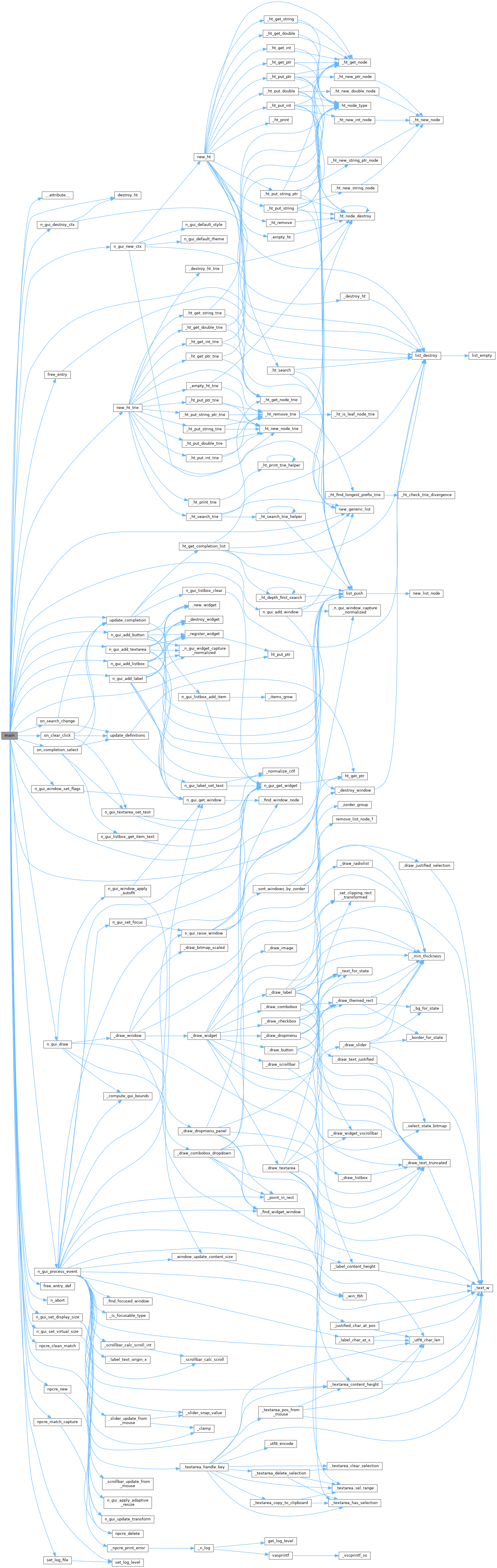 References __attribute__(), _str, completion, completion_listbox_id, DICTIONARY_DEFINITION::definition, definition_label_id, definition_win_id, DICTIONARY_ENTRY::definitions, destroy_ht(), dictionary, display, DONE, fps_timer, free_entry(), free_entry_def(), FreeNoLog, getoptret, gui, HEIGHT, ht_get_ptr(), ht_put_ptr(), DICTIONARY_ENTRY::key, key, last_search, list_destroy(), list_push(), LOG_DEBUG, LOG_ERR, LOG_INFO, log_level, LOG_NOTICE, Malloc, N_PCRE::match_list, MAX_LIST_ITEMS, n_abort(), n_gui_add_button(), n_gui_add_label(), n_gui_add_listbox(), n_gui_add_textarea(), n_gui_add_window(), N_GUI_ALIGN_JUSTIFIED, N_GUI_ALIGN_LEFT, n_gui_destroy_ctx(), n_gui_draw(), n_gui_new_ctx(), n_gui_process_event(), N_GUI_SELECT_SINGLE, n_gui_set_display_size(), n_gui_set_virtual_size(), N_GUI_SHAPE_ROUNDED, N_GUI_WIN_FIXED_POSITION, n_gui_window_set_flags(), n_log, new_generic_list(), new_ht_trie(), npcre_clean_match(), npcre_delete(), npcre_match_capture(), npcre_new(), on_clear_click(), on_completion_select(), on_search_change(), search_textarea_id, set_log_file(), set_log_level(), status_label_id, status_win_id, DICTIONARY_DEFINITION::type, update_completion(), and WIDTH.