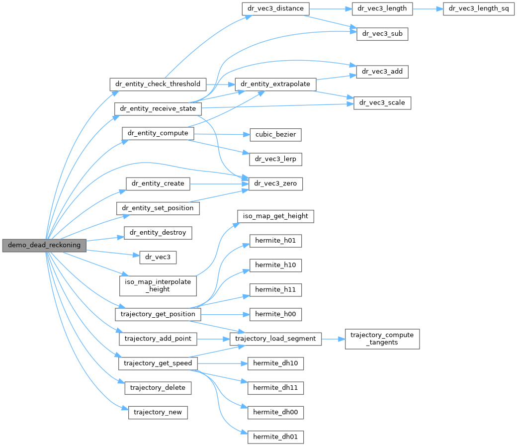 References DR_ALGO_VEL_ACC, DR_BLEND_CUBIC, DR_BLEND_PVB, DR_BLEND_SNAP, dr_entity_check_threshold(), dr_entity_compute(), dr_entity_create(), dr_entity_destroy(), dr_entity_receive_state(), dr_entity_set_position(), dr_vec3(), dr_vec3_zero(), iso_map_interpolate_height(), ASTAR_PATH::length, ASTAR_PATH::nodes, PHYSICS::position, PHYSICS::speed, TRAJECTORY_2D, trajectory_add_point(), trajectory_delete(), trajectory_get_position(), trajectory_get_speed(), trajectory_new(), DR_ENTITY::update_count, ASTAR_NODE::x, DR_VEC3::x, ASTAR_NODE::y, and DR_VEC3::y.