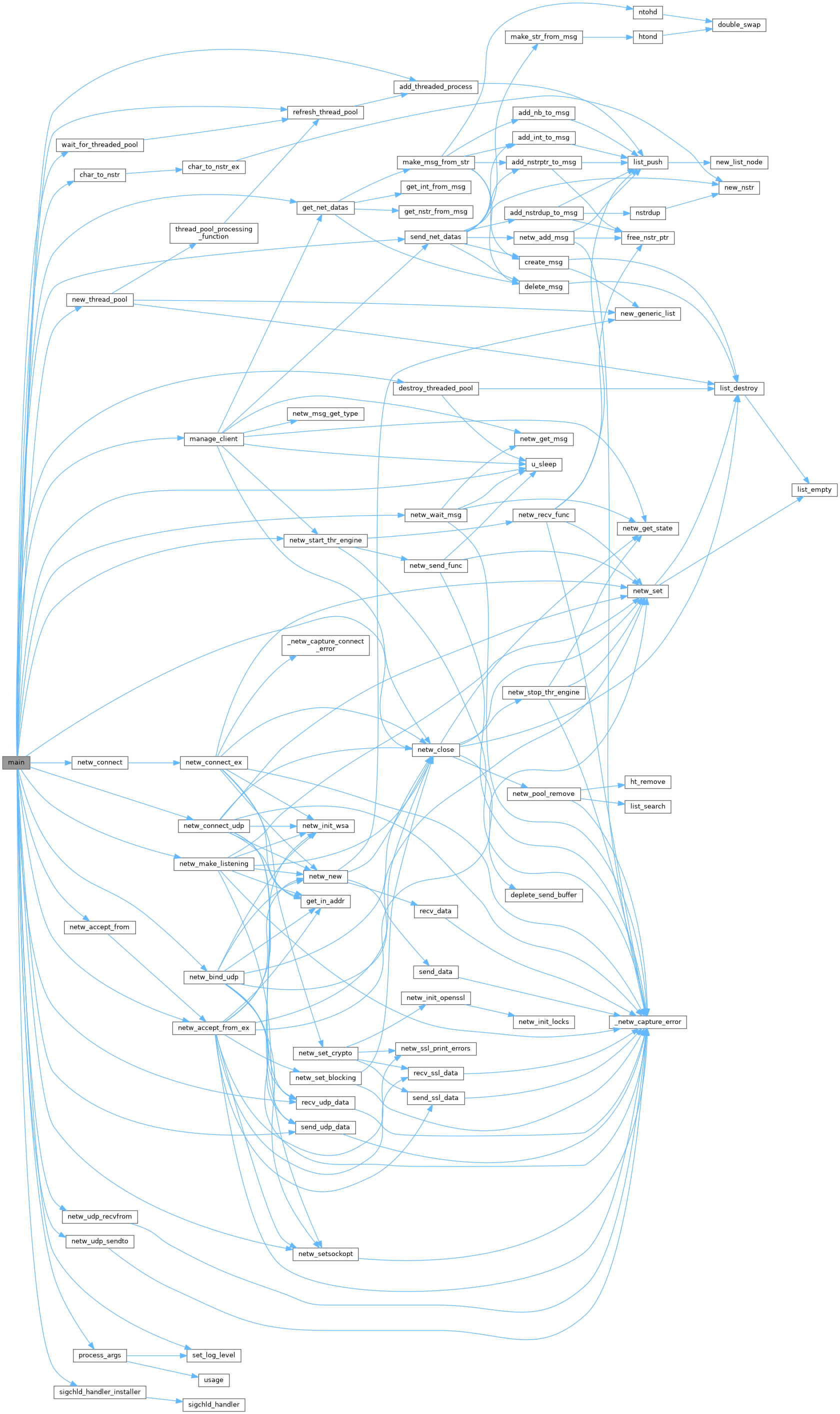 References _nstr, _str, add_threaded_process(), addr, char_to_nstr(), CLIENT, destroy_threaded_pool(), DIRECT_PROC, free_nstr, FreeNoLog, get_net_datas(), N_SOCKET::ip, ip_mode, NETWORK::link, LOG_DEBUG, LOG_ERR, LOG_INFO, LOG_NOTICE, manage_client(), mode, n_log, NB_ATTEMPTS, netw, netw_accept_from(), netw_accept_from_ex(), netw_bind_udp(), netw_close(), netw_connect(), netw_connect_udp(), netw_make_listening(), netw_server, netw_setsockopt(), netw_start_thr_engine(), netw_thr, netw_udp_recvfrom(), netw_udp_sendto(), netw_wait_msg(), NETWORK_WAIT_CLOSE_TIMEOUT, new_thread_pool(), port, process_args(), recv_udp_data(), refresh_thread_pool(), send_net_datas(), send_udp_data(), SERVER, set_log_level(), sigchld_handler_installer(), thread_pool, u_sleep(), use_udp, and wait_for_threaded_pool().