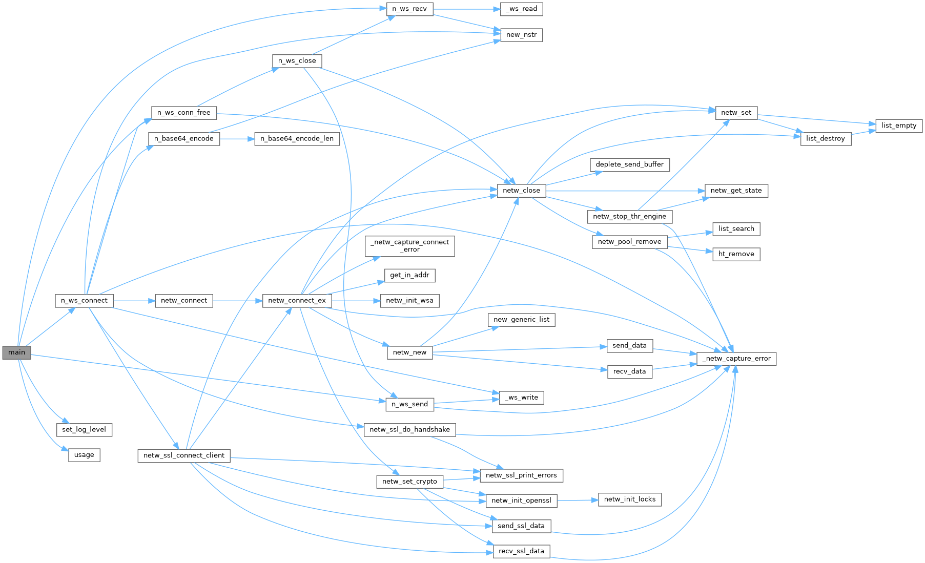 References N_STR::data, free_nstr, getoptret, LOG_DEBUG, LOG_ERR, LOG_INFO, log_level, LOG_NOTICE, LOG_NULL, n_log, n_ws_conn_free(), n_ws_connect(), N_WS_OP_TEXT, n_ws_recv(), n_ws_send(), N_WS_MESSAGE::opcode, N_WS_MESSAGE::payload, set_log_level(), and usage().