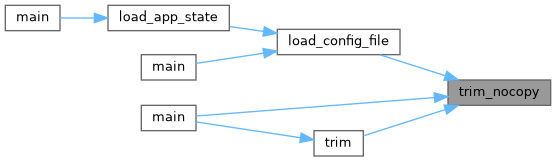 Here is the caller graph for this function:| char * trim_nocopy | ( | char * | s | ) |