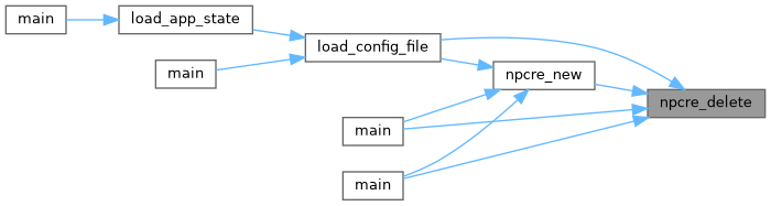 Here is the caller graph for this function:| int npcre_delete | ( | N_PCRE ** | pcre | ) |