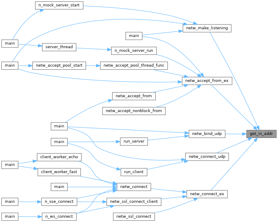 Here is the caller graph for this function:| char * get_in_addr | ( | struct sockaddr * | sa | ) |