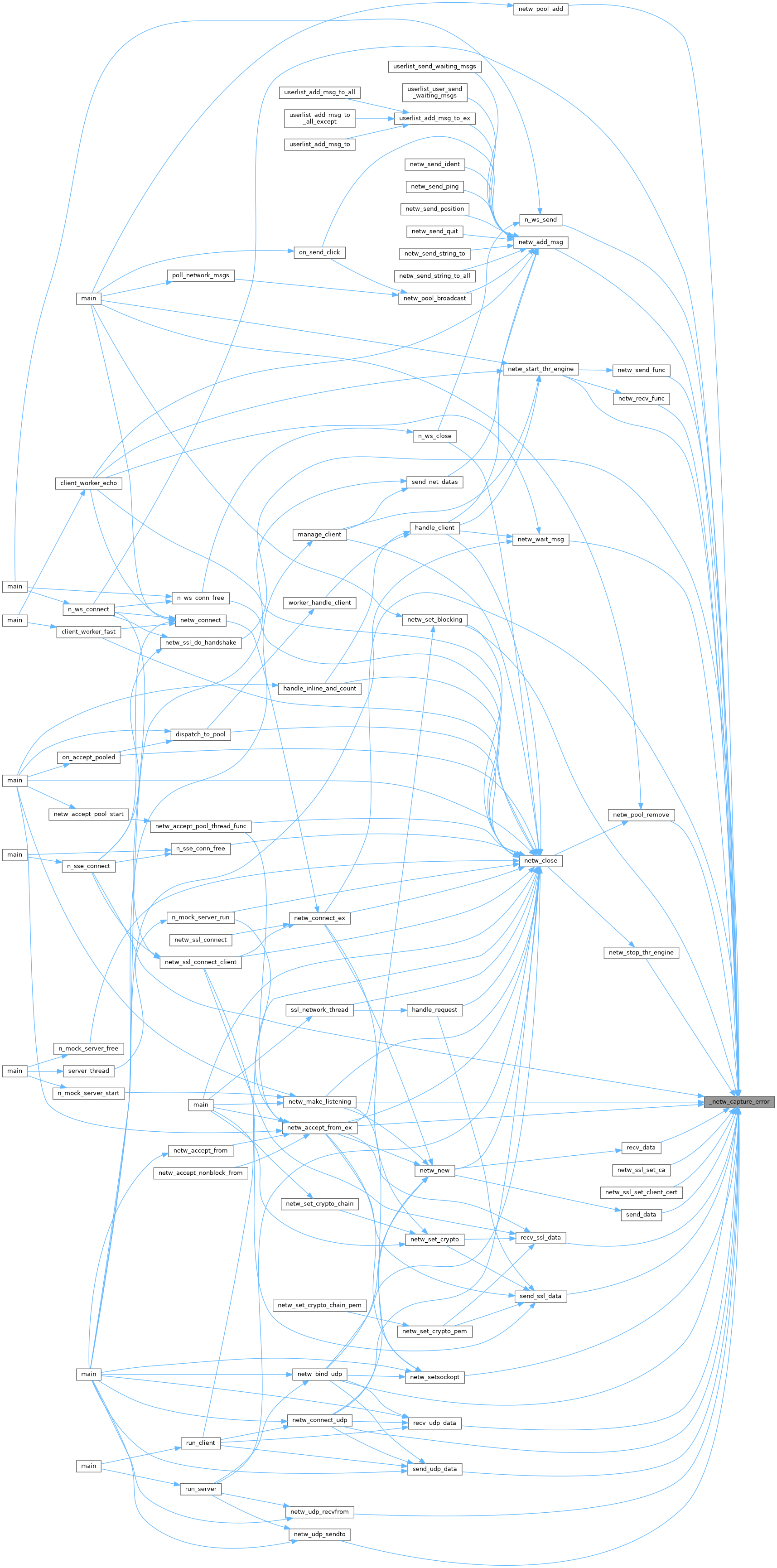 Referenced by n_sse_connect(), n_ws_connect(), n_ws_send(), netw_accept_from_ex(), netw_add_msg(), netw_bind_udp(), netw_connect_ex(), netw_connect_udp(), netw_make_listening(), netw_pool_add(), netw_pool_remove(), netw_recv_func(), netw_send_func(), netw_set_blocking(), netw_setsockopt(), netw_ssl_do_handshake(), netw_ssl_set_ca(), netw_ssl_set_client_cert(), netw_start_thr_engine(), netw_stop_thr_engine(), netw_udp_recvfrom(), netw_udp_sendto(), netw_wait_msg(), recv_data(), recv_ssl_data(), recv_udp_data(), send_data(), send_ssl_data(), and send_udp_data().